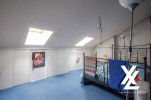 Le second niveau offre une chambre, une lingerie et une surface aménageable de plus de 170 m² au sol, permettant d'envisager la création d'un loft, de chambres supplémentaires, d'un espace familial ou d'un projet locatif (division possible selon travaux).